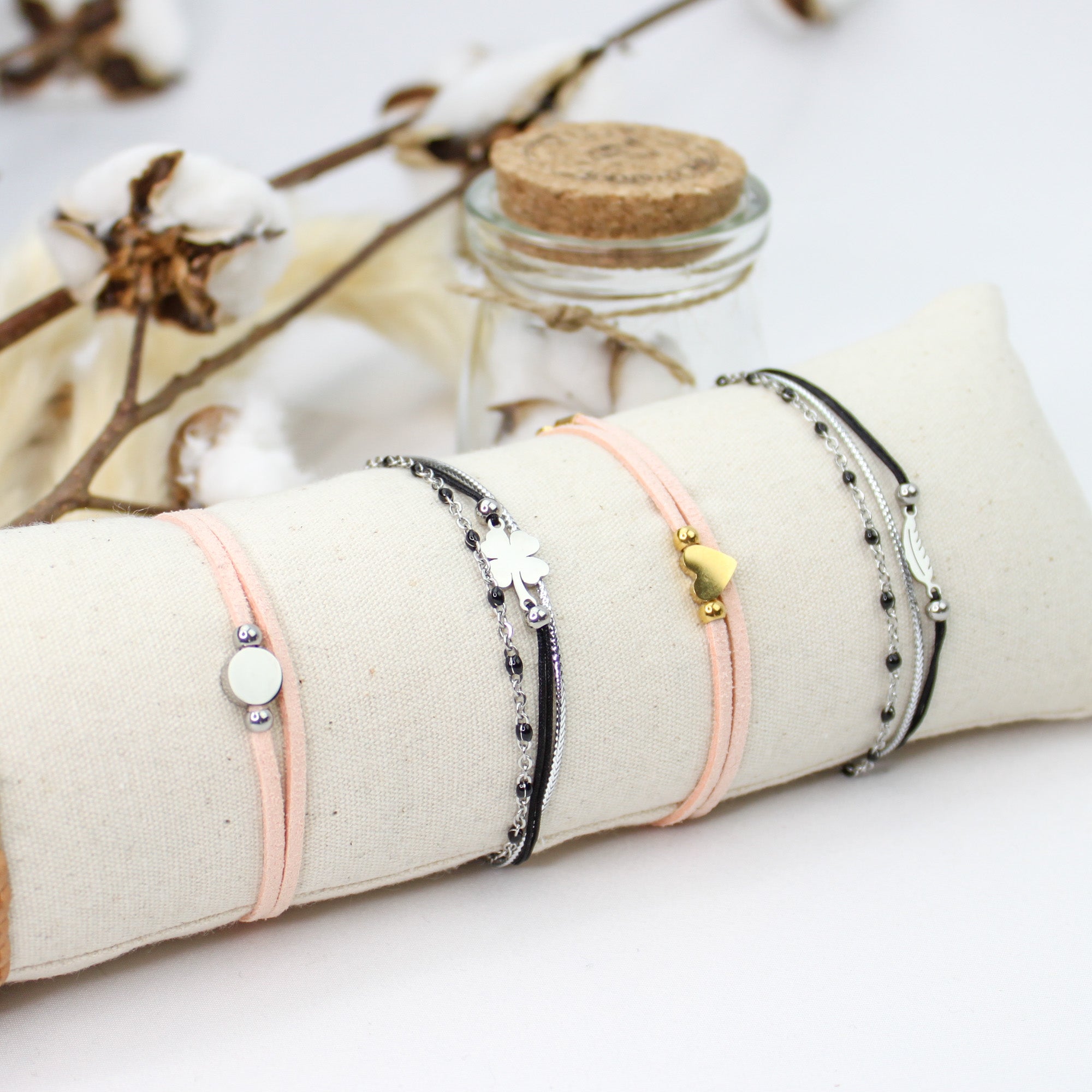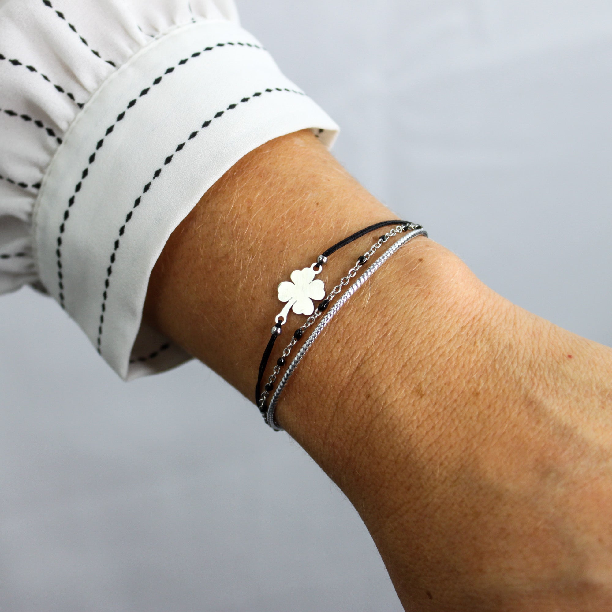 Découvrez le sublime bracelet Santa Fé, une création unique et raffinée signée Delina Bijoux. Ce bijou élégant est composé d’une estampe trèfle en acier inoxydable, apportant une touche de sophistication et de charme à votre poignet. Il est relié à un cordon en nylon tressé de haute qualité, pour un confort optimal et une durabilité accrue.